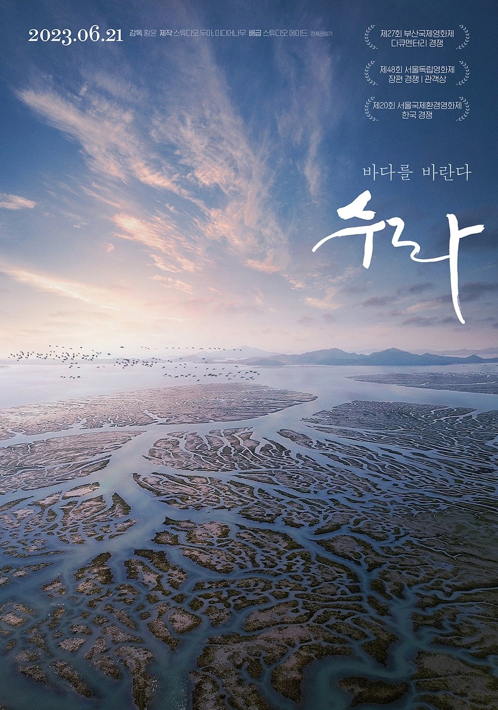 After quitting filmmaking about the tidal flat that underwent Saemangeum Seawall Project a few years ago, she moved to Gunsan-si, a city of Saemangeum, as she seemed destined to. Sura: A Love Song delivers the course of rediscovering the beauty of the tidal flat working together with the Citizens’ Survey Group on Saemangeum that has continued its research for nearly twenty years.