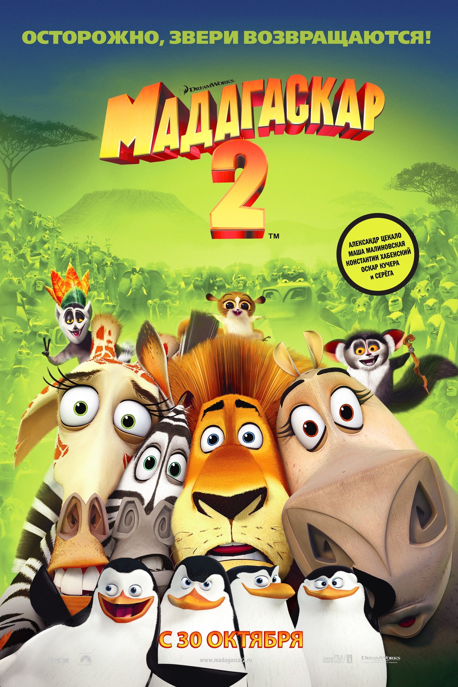 Alex, Marty, and other zoo animals find a way to escape from Madagascar when the penguins reassemble a wrecked airplane. The precariously repaired craft stays airborne just long enough to make it to the African continent. There the New Yorkers encounter members of their own species for the first time. Africa proves to be a wild place, but Alex and company wonder if it is better than their Central Park home.
