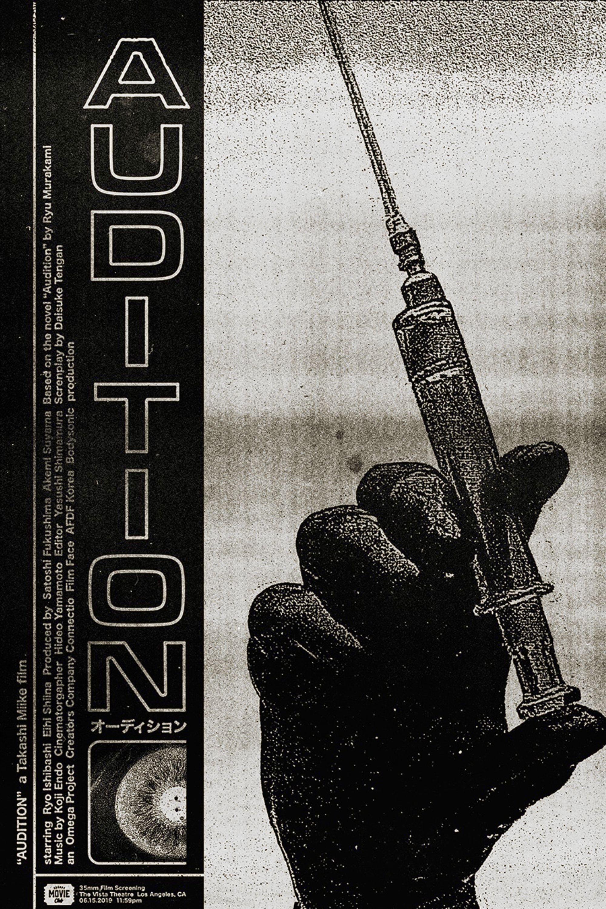 Seven years after the death of his wife, widower Shigeharu seeks advice on how to find a new wife from a colleague. Taking advantage of their position as a film company, they stage an audition. Interviewing a series of women, Shigeharu is enchanted by the quiet Asami. But soon things take a twisted turn as Asami isn’t what she seems to be.