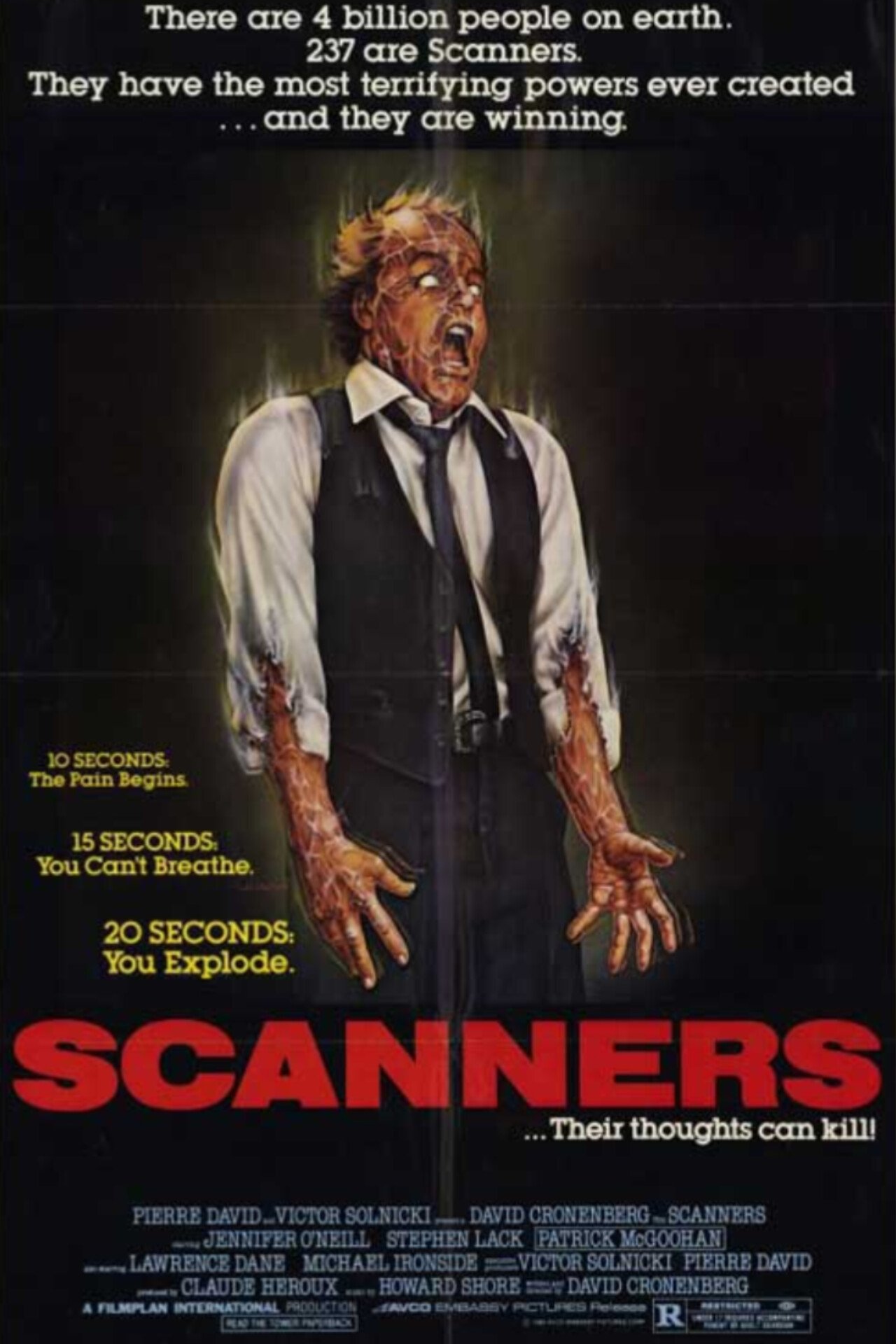 After a man with extraordinary, and frighteningly destructive, telepathic abilities is nabbed by agents from a mysterious rogue corporation, he discovers he is far from the only possessor of such strange powers. Some of the other “scanners” have their minds set on world domination, while others are trying to stop them.