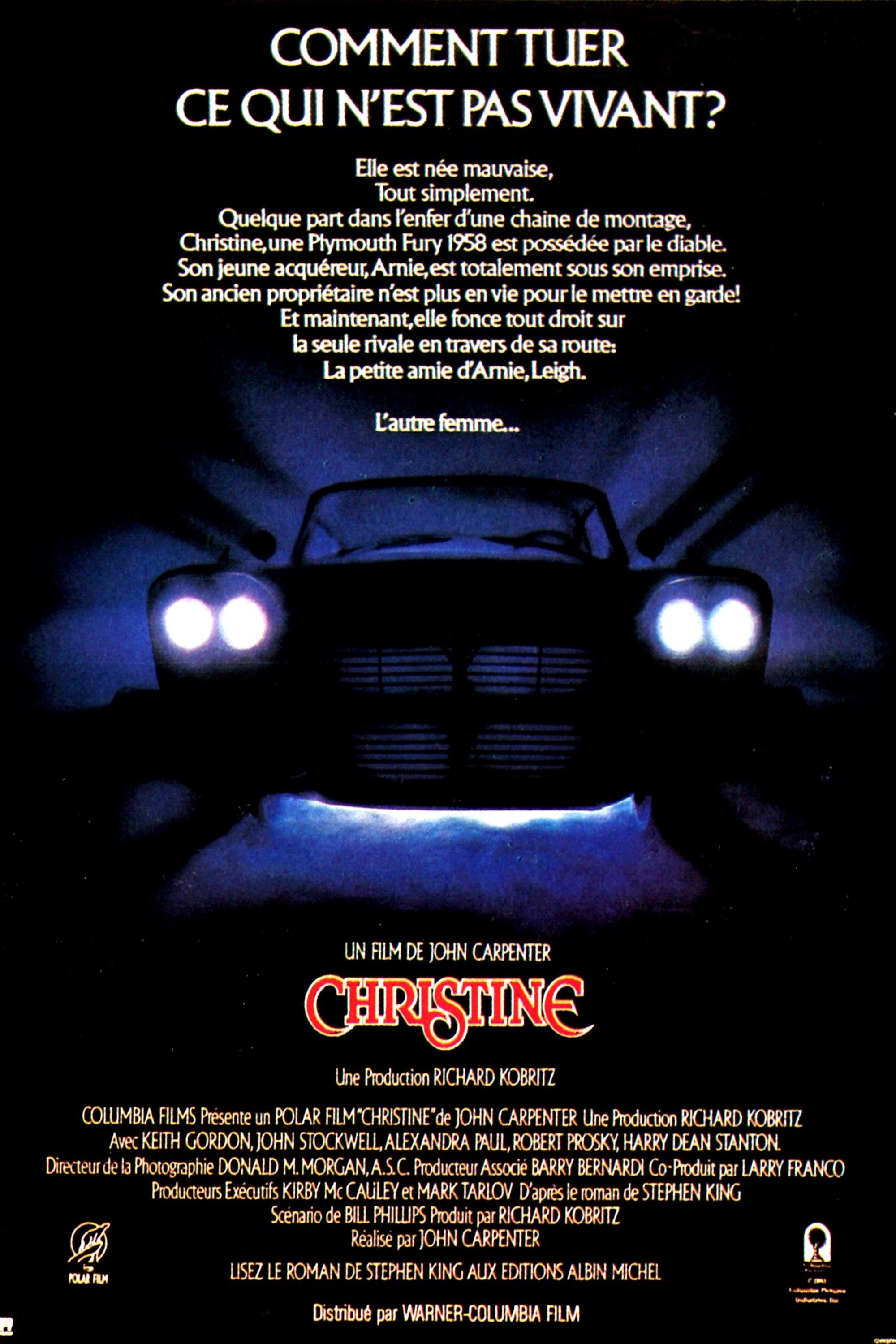 Nerdy high schooler Arnie Cunningham falls for Christine, a rusty 1958 Plymouth Fury, and becomes obsessed with restoring the classic automobile to her former glory. As the car changes, so does Arnie, whose newfound confidence turns to arrogance behind the wheel of his exotic beauty. Arnie's girlfriend Leigh and best friend Dennis reach out to him, only to be met by a Fury like no other.