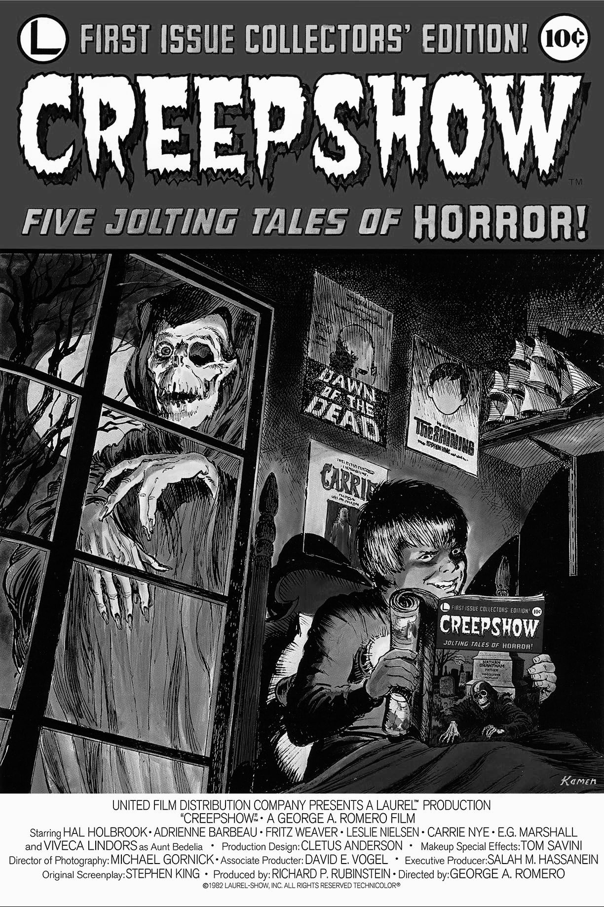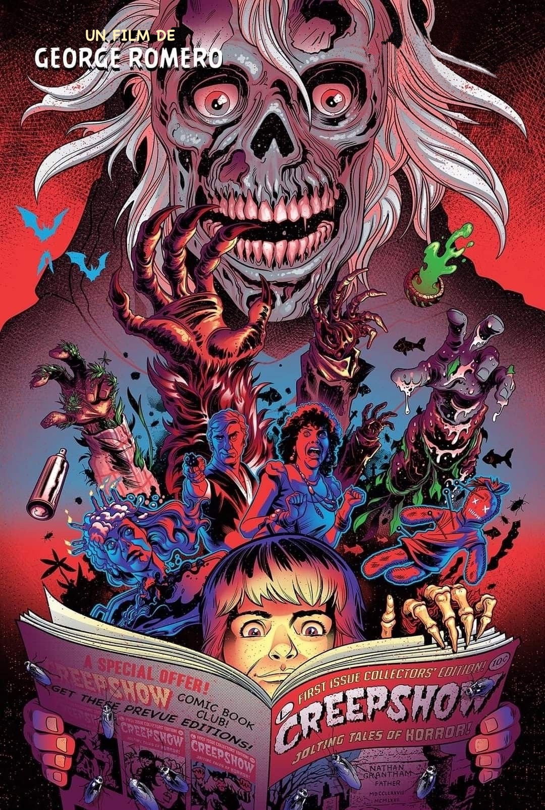 Five grisly tales from a 1950s-style comic, including a murdered father rising from beyond, a bizarre meteor, a vengeful husband, a mysterious crate's occupant, and a plague of cockroaches.