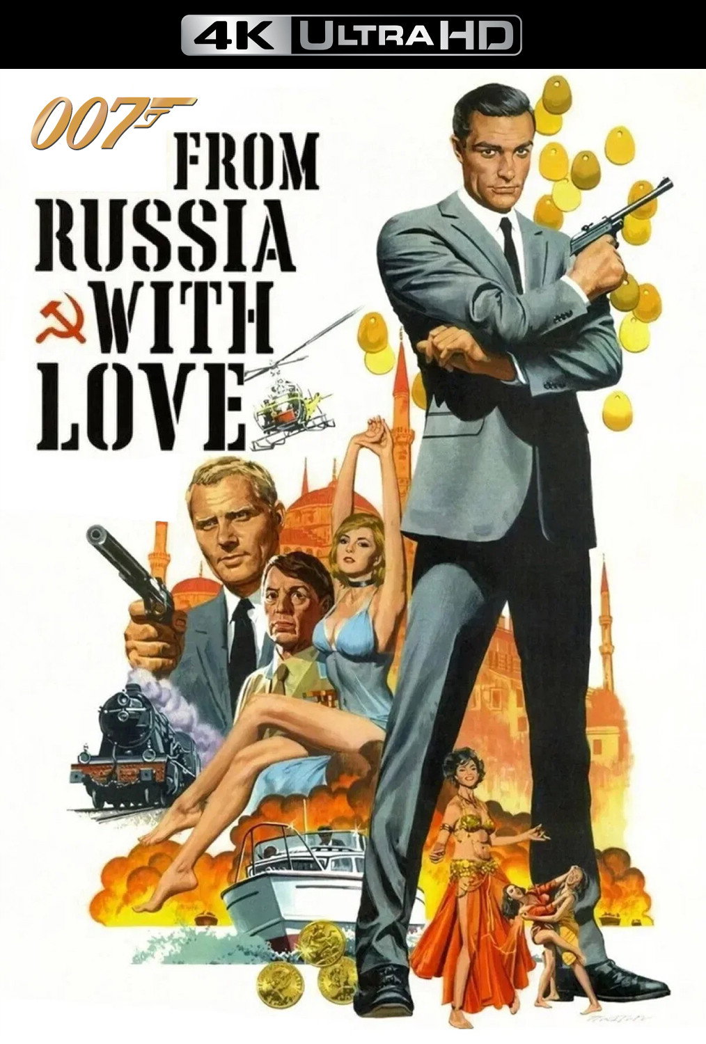 Agent 007 is back in the second installment of the James Bond series, this time battling a secret crime organization known as SPECTRE. Russians Rosa Klebb and Kronsteen are out to snatch a decoding device known as the Lektor, using the ravishing Tatiana to lure Bond into helping them. Bond willingly travels to meet Tatiana in Istanbul, where he must rely on his wits to escape with his life in a series of deadly encounters with the enemy.