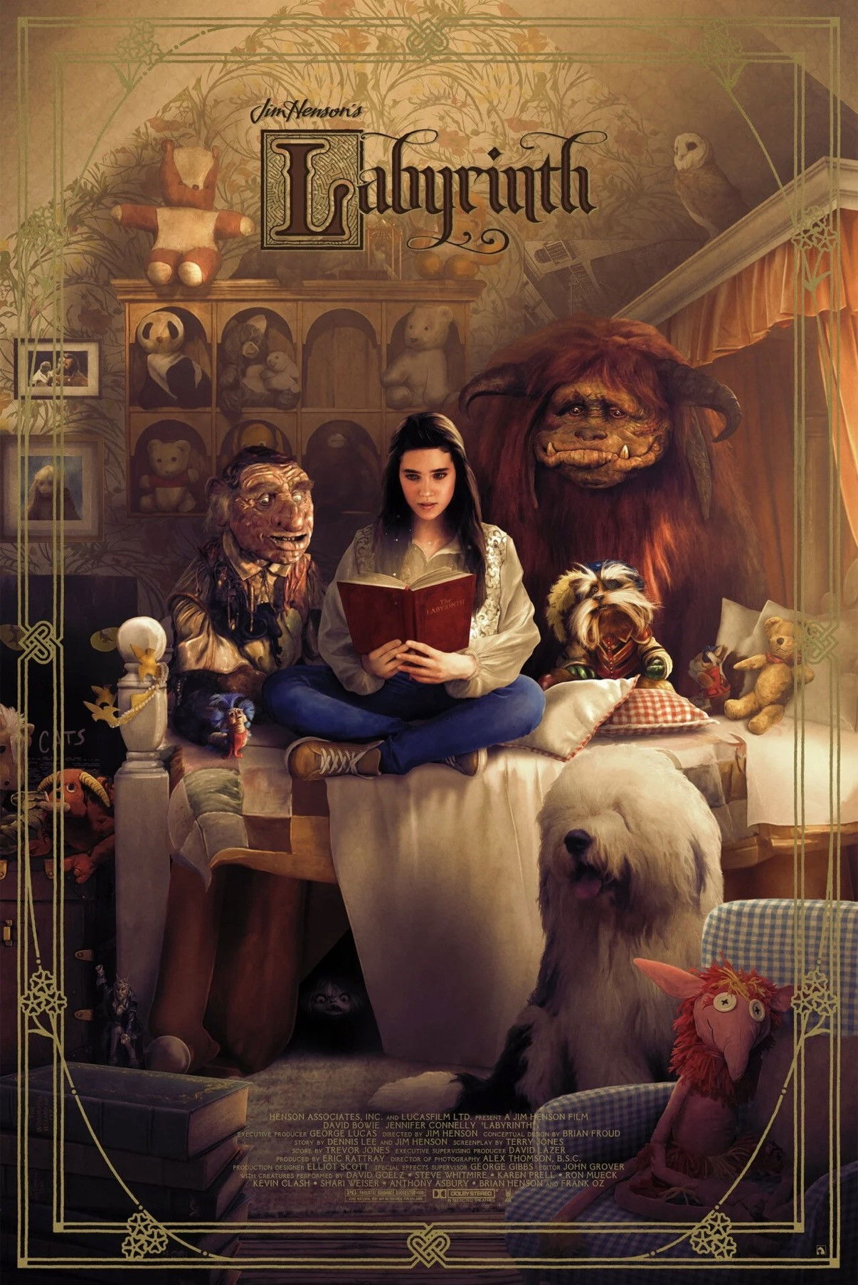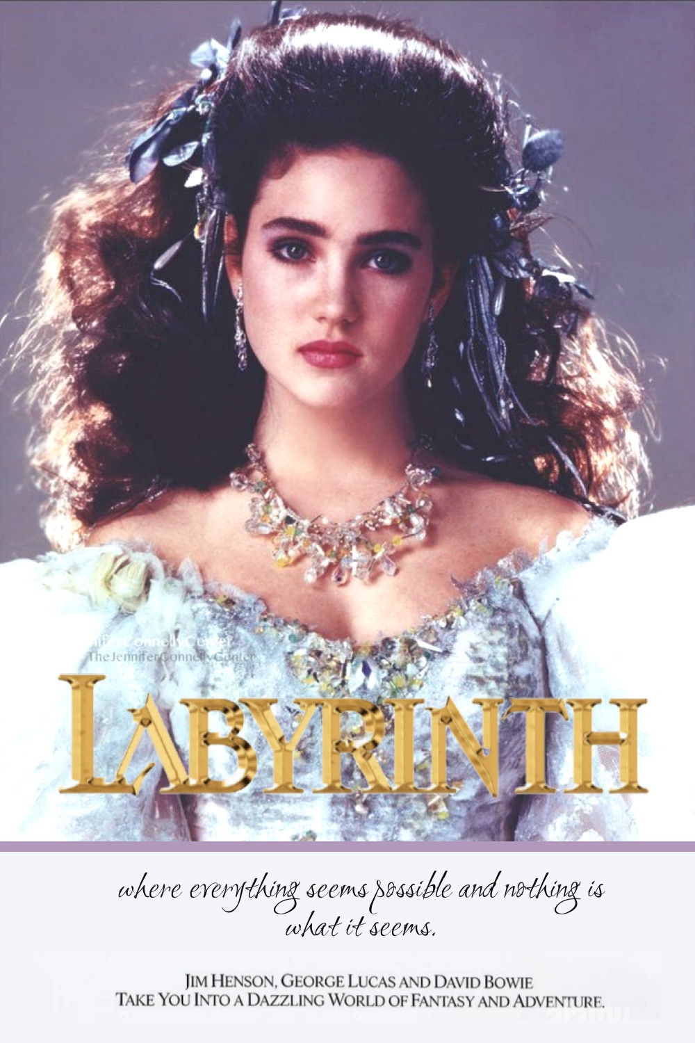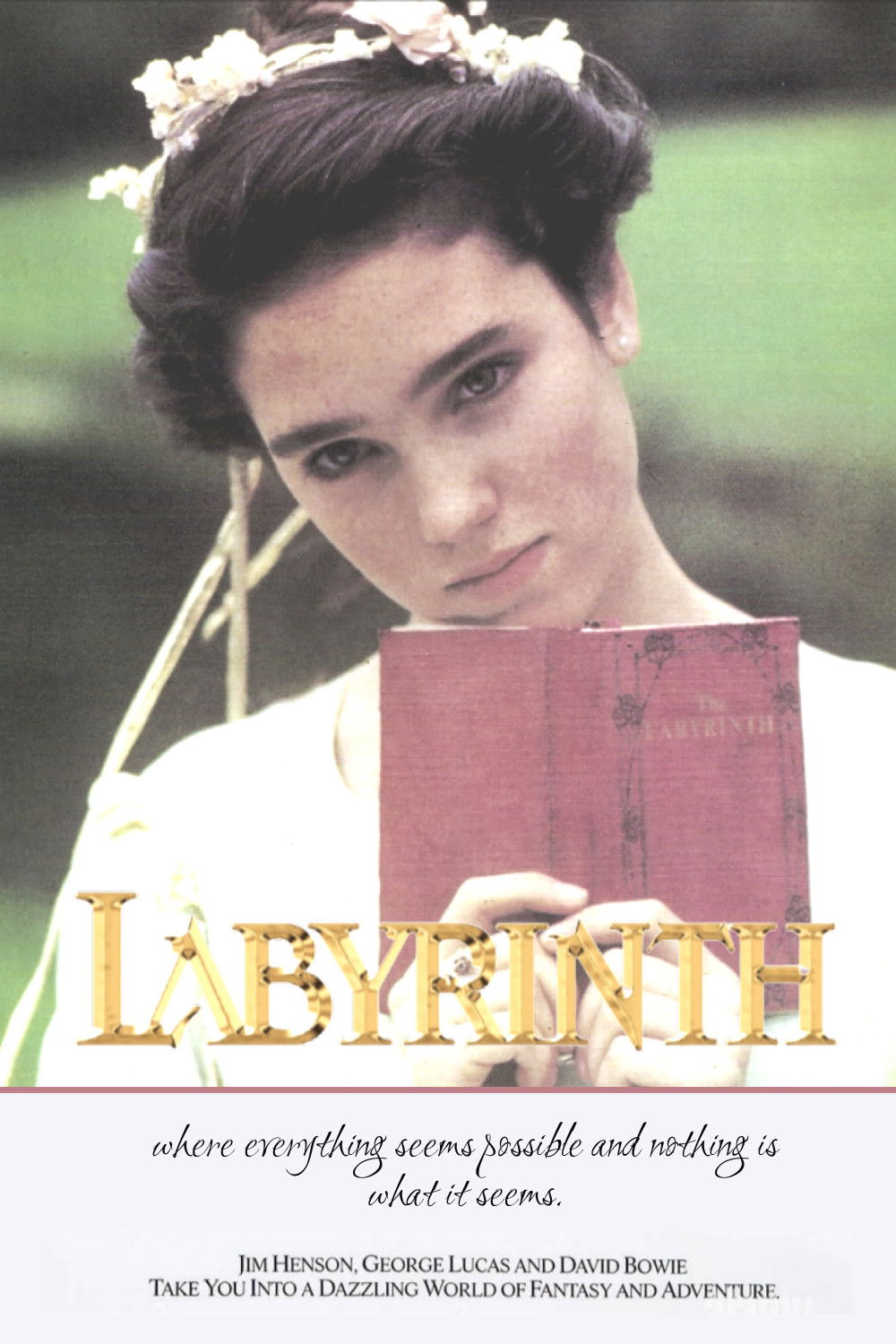 Frustrated with babysitting on yet another weekend night, Sarah, a teenager with an active imagination, summons the Goblins to take her baby stepbrother away. When little Toby actually disappears, Sarah must follow him into a fantastical world to rescue him from the Goblin King. Guarding his castle is the labyrinth itself, a twisted maze of deception, populated with outrageous characters and unknown dangers.