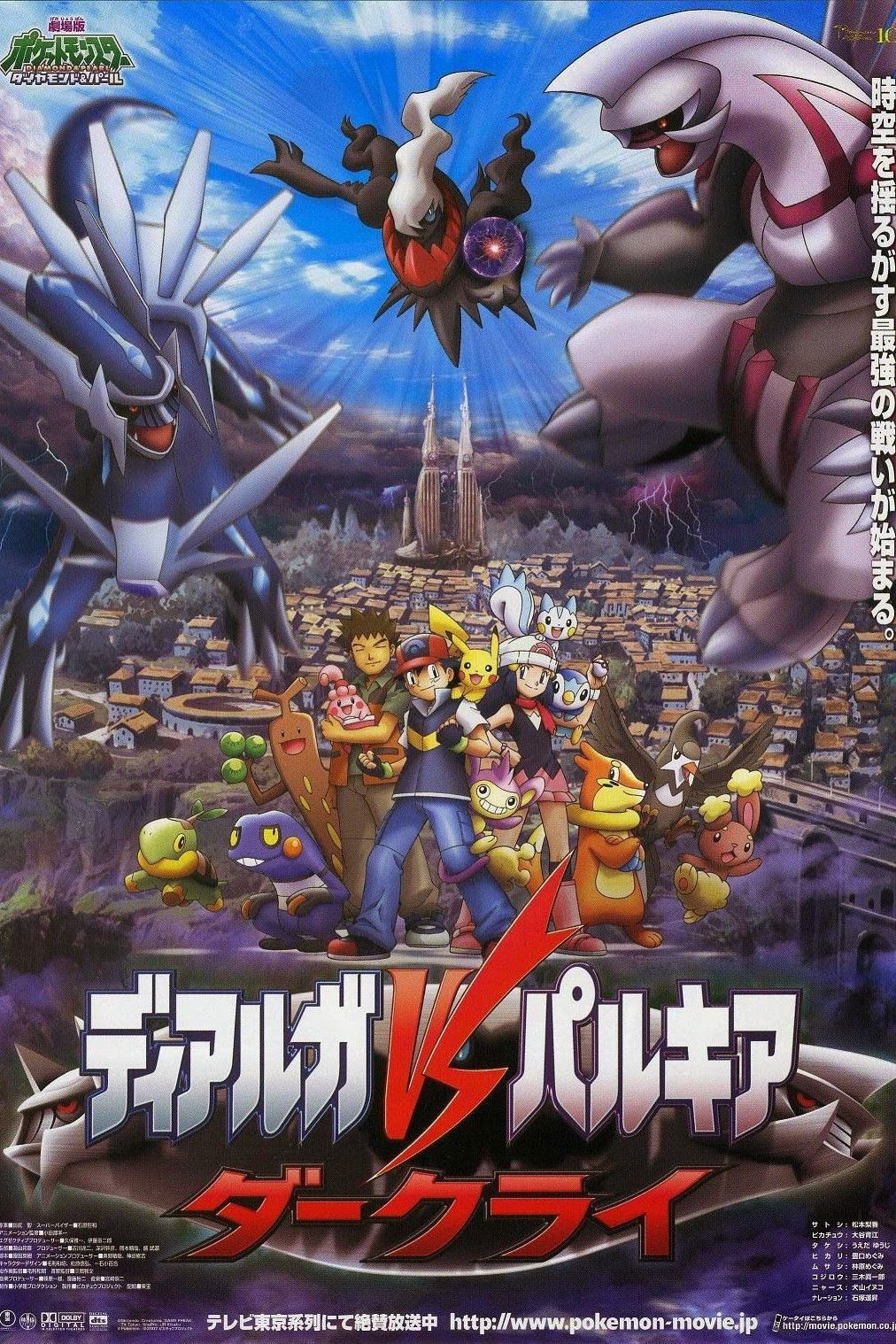 Ash and friends (this time accompanied by newcomer Dawn) arrive at an idyllic village on their way to their next Pokemon contest, where chaos will soon erupt with the prophecy of two Pokemon Gods (Dialga and Palkia) and the arrival of a mysterious, seemingly deadly Pokemon named Darkrai, which has the power to distort space and time.