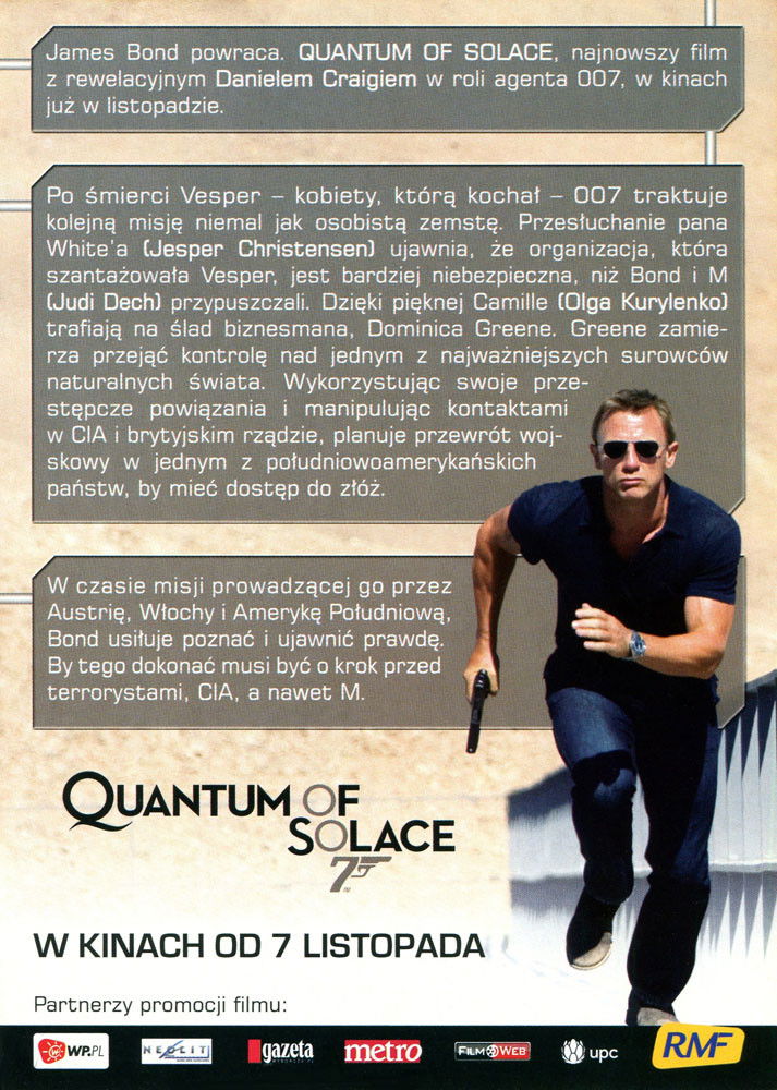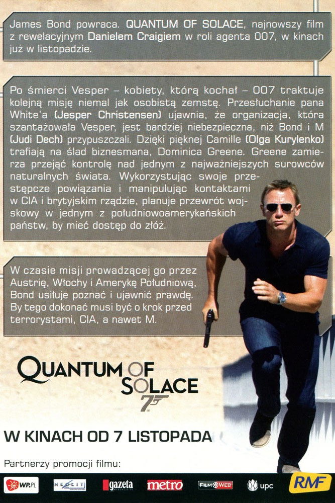 Betrayed by Vesper, the woman he loved, 007 fights the urge to make his latest mission personal. Pursuing his determination to uncover the truth, Bond and M interrogate Mr. White, who reveals that the organization that blackmailed Vesper is far more complex and dangerous than anyone had imagined.