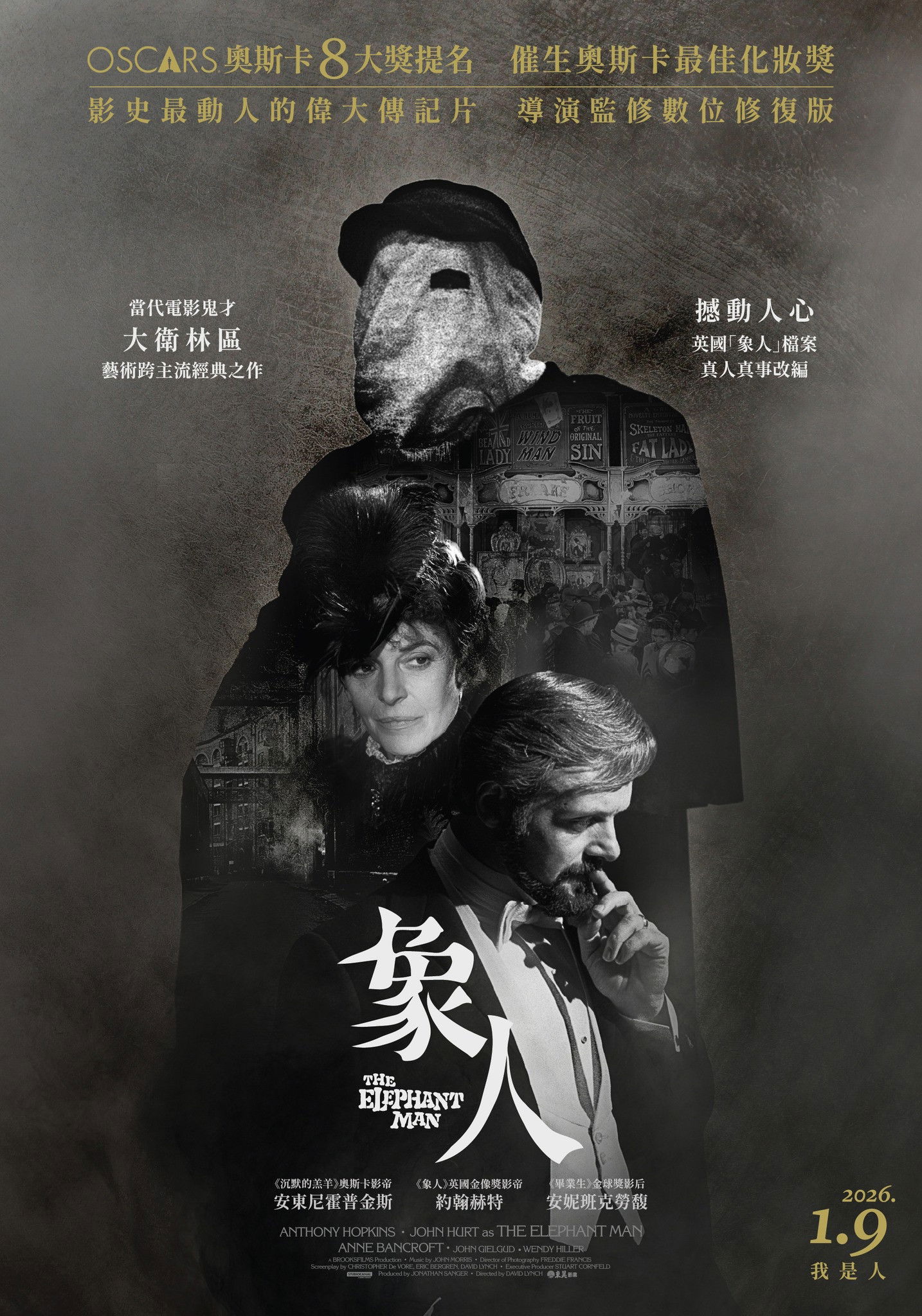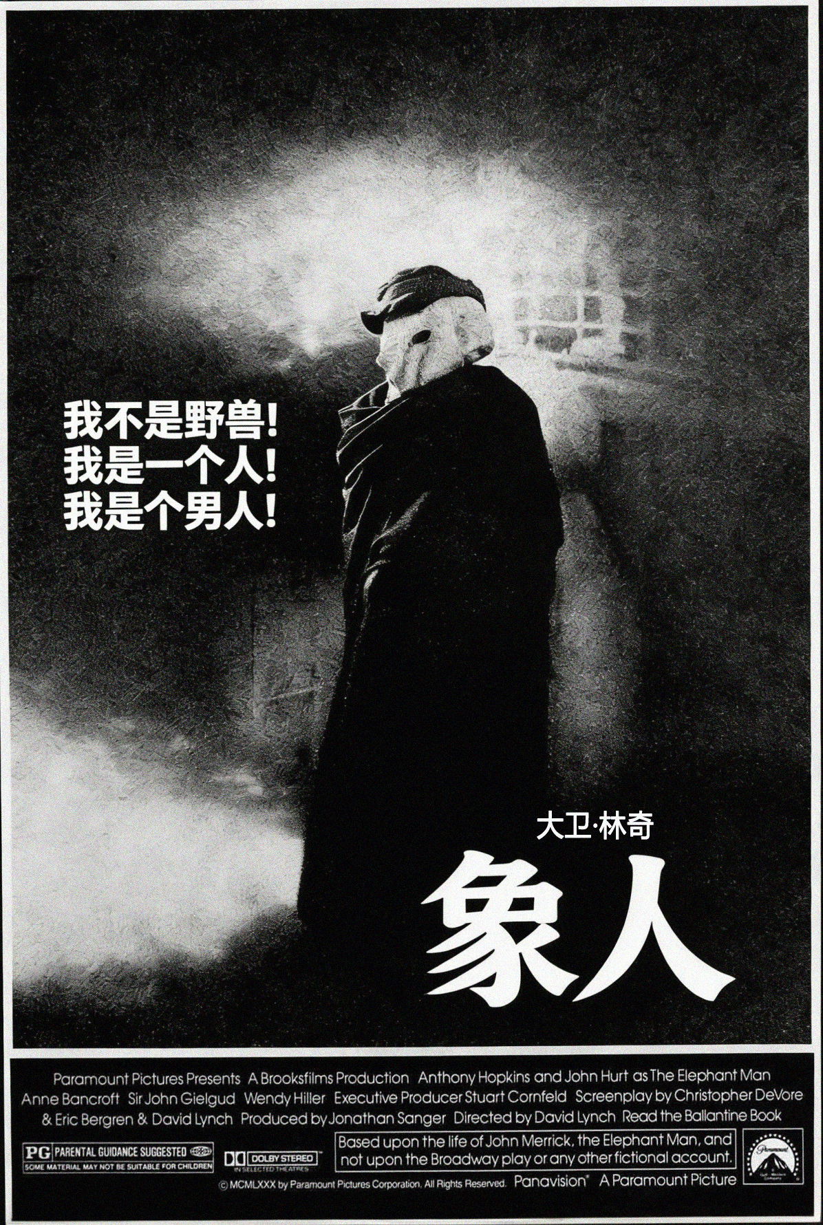 A Victorian surgeon rescues a heavily disfigured man being mistreated by his "owner" as a side-show freak. Behind his monstrous façade, there is revealed a person of great intelligence and sensitivity. Based on the true story of Joseph Merrick (called John Merrick in the film), a severely deformed man in 19th century London.