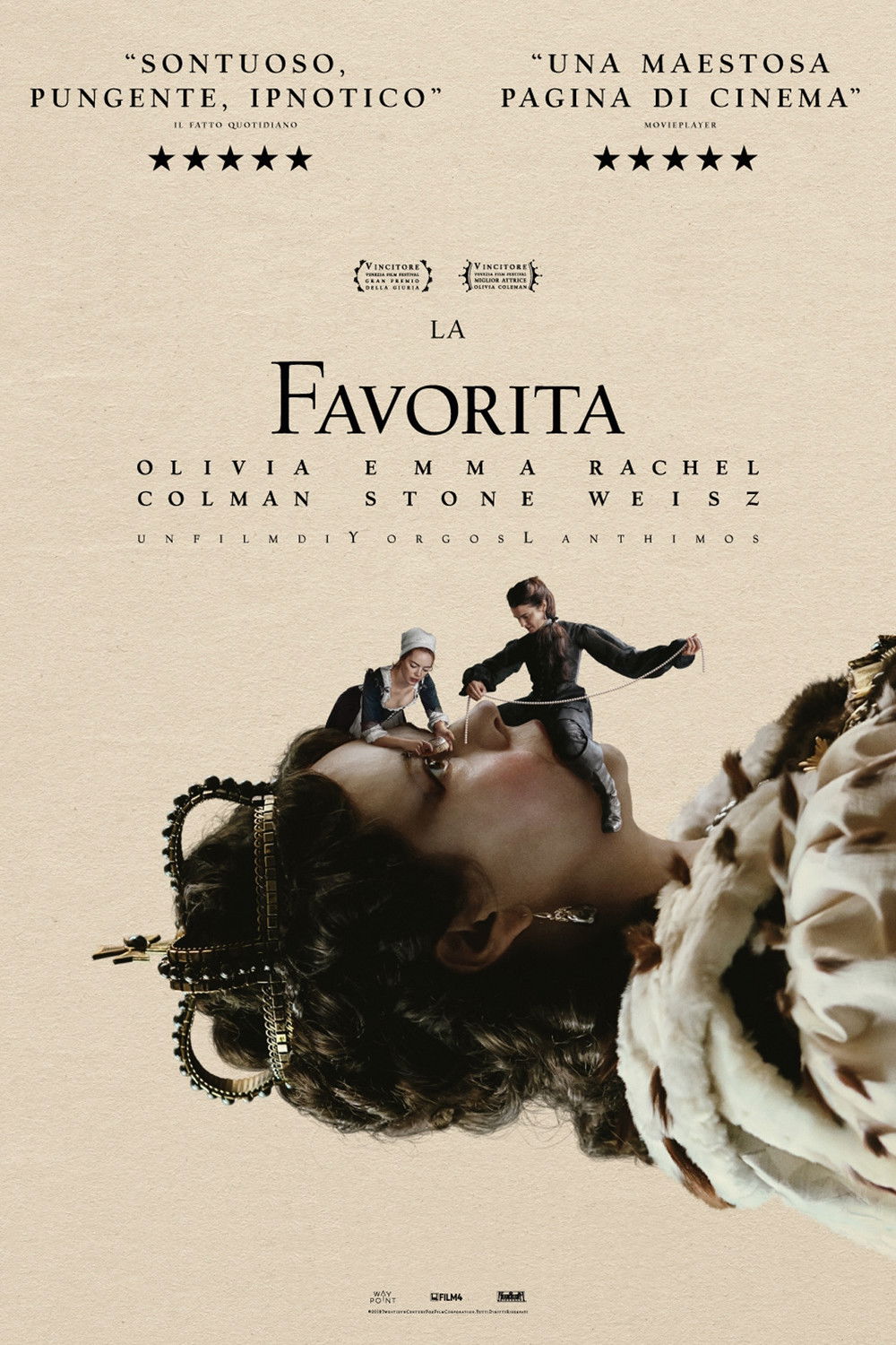 England, early 18th century. The close relationship between Queen Anne and Sarah Churchill is threatened by the arrival of Sarah's cousin, Abigail Hill, resulting in a bitter rivalry between the two cousins to be the Queen's favourite.