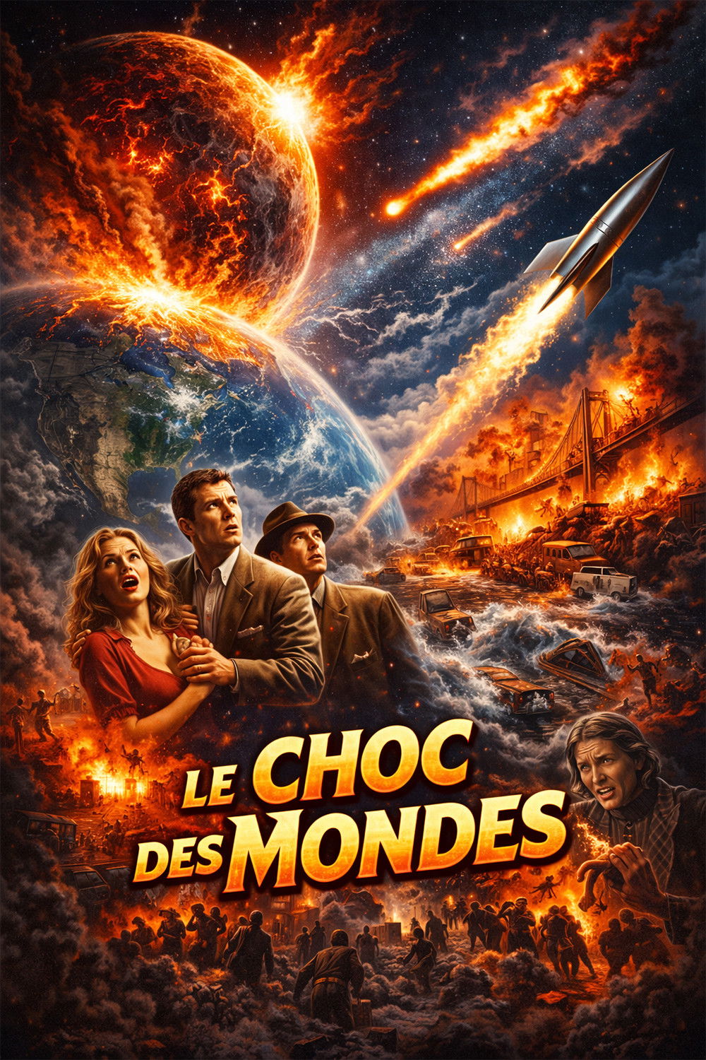 When a group of astronomers calculate a star is on a course to slam into Earth, a few days before, it's accompanying planet will first pass close enough to the Earth to cause havoc on land and sea. They set about building a rocket so a few selected individuals can escape to the planet.