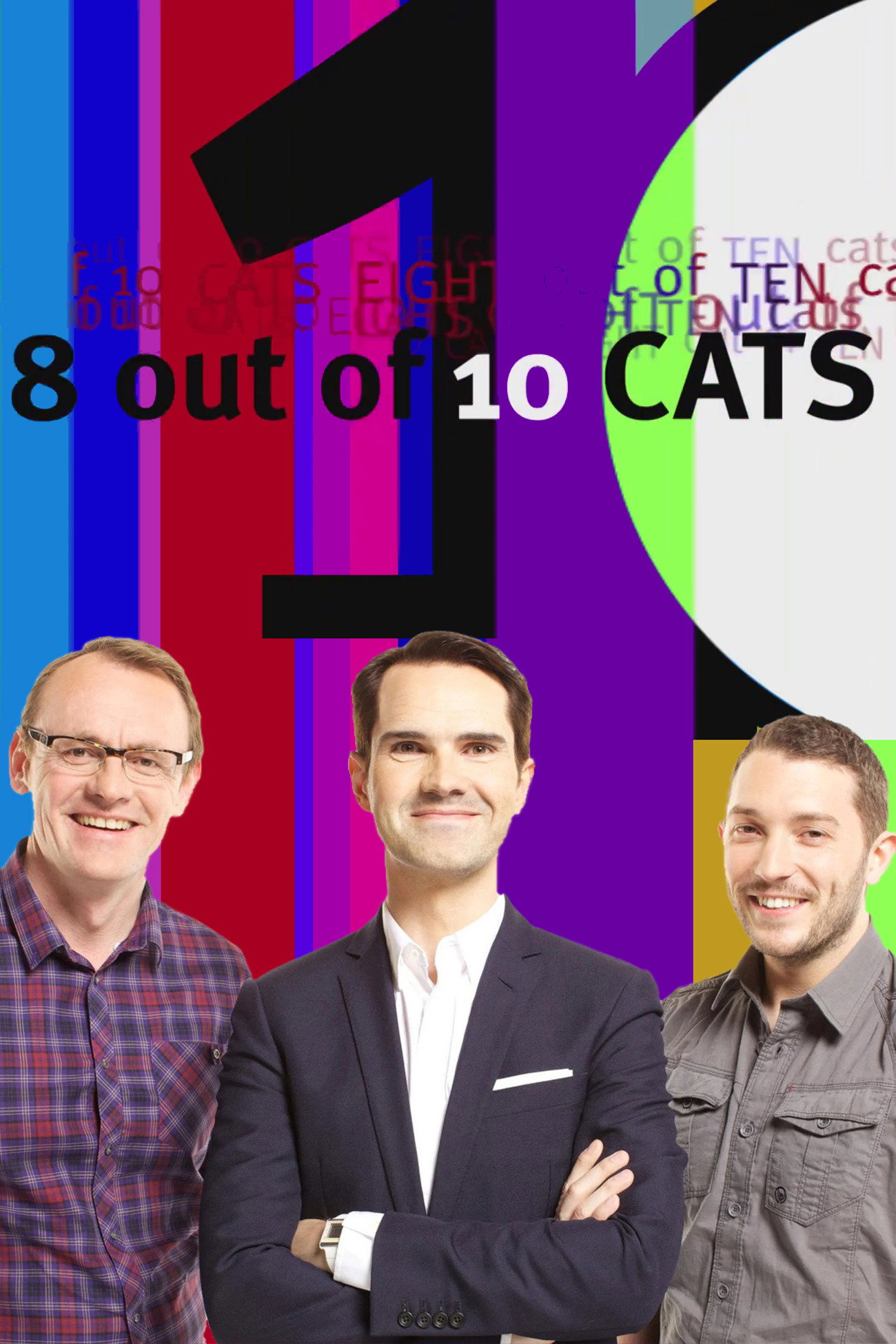 8 Out of 10 Cats returns this autumn to bring debate, dispute and deliberation to the hot topics that are getting the almighty British public's chins wagging. As ever, presenter and stand-up comic Jimmy Carr plays host, joined by team captains Sean Lock and Jason Manford. Alongside them are panellists from the world of comedy, entertainment and showbiz, as well as a few surprise guests. Teams thrash out the topics of the week by examining surveys, opinion polls and statistics; discussing both silly and serious stuff, with subjects ranging from showbiz and gossip to world politics and even the weather.
