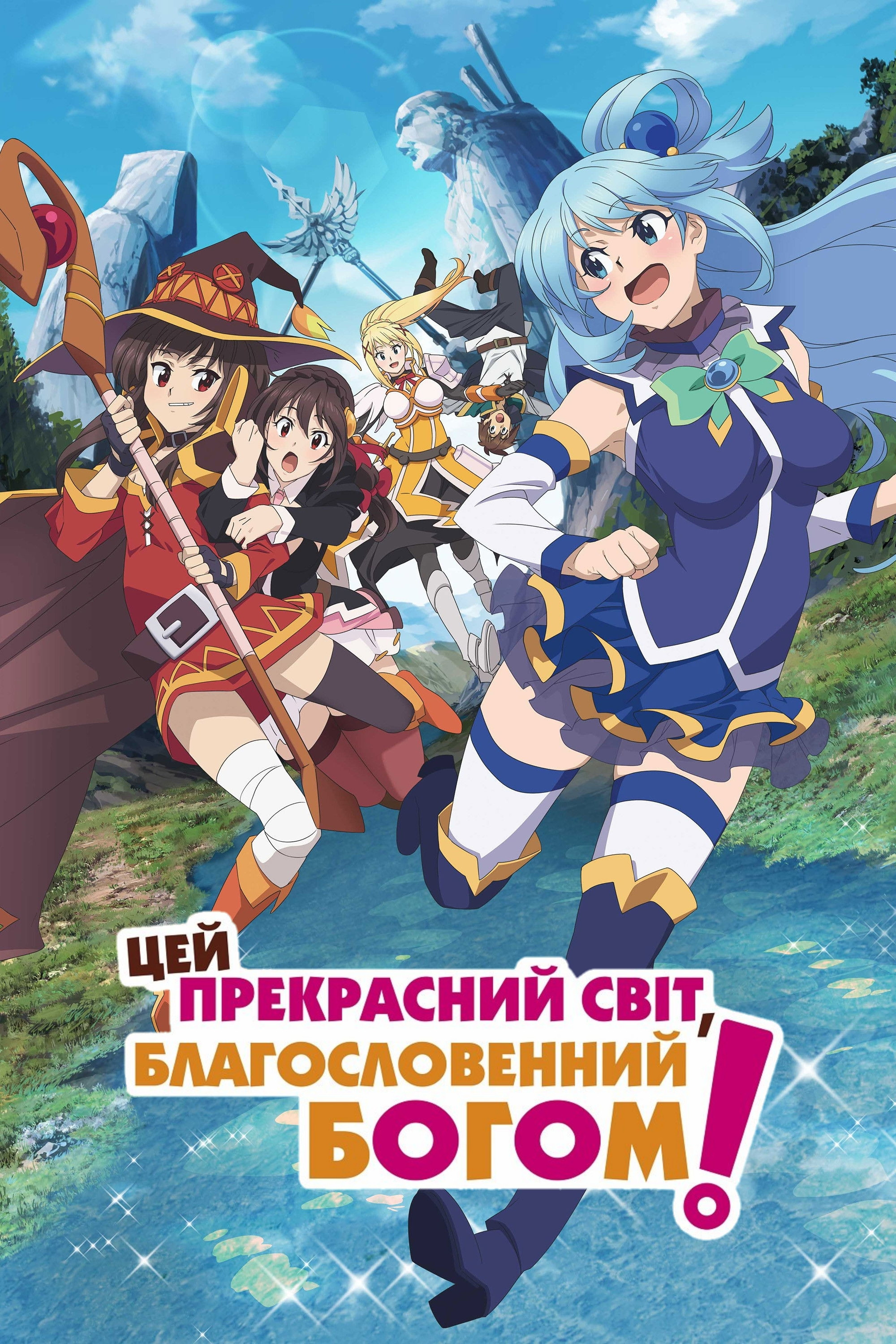 After a traffic accident, Kazuma Sato’s disappointingly brief life was supposed to be over, but he wakes up to see a beautiful girl before him. She claims to be a goddess, Aqua, and asks if he would like to go to another world and bring only one thing with him. Kazuma decides to bring the goddess herself, and they are transported to a fantasy world filled with adventure, ruled by a demon king. Now Kazuma only wants to live in peace, but Aqua wants to solve many of this world’s problems, and the demon king will only turn a blind eye for so long…