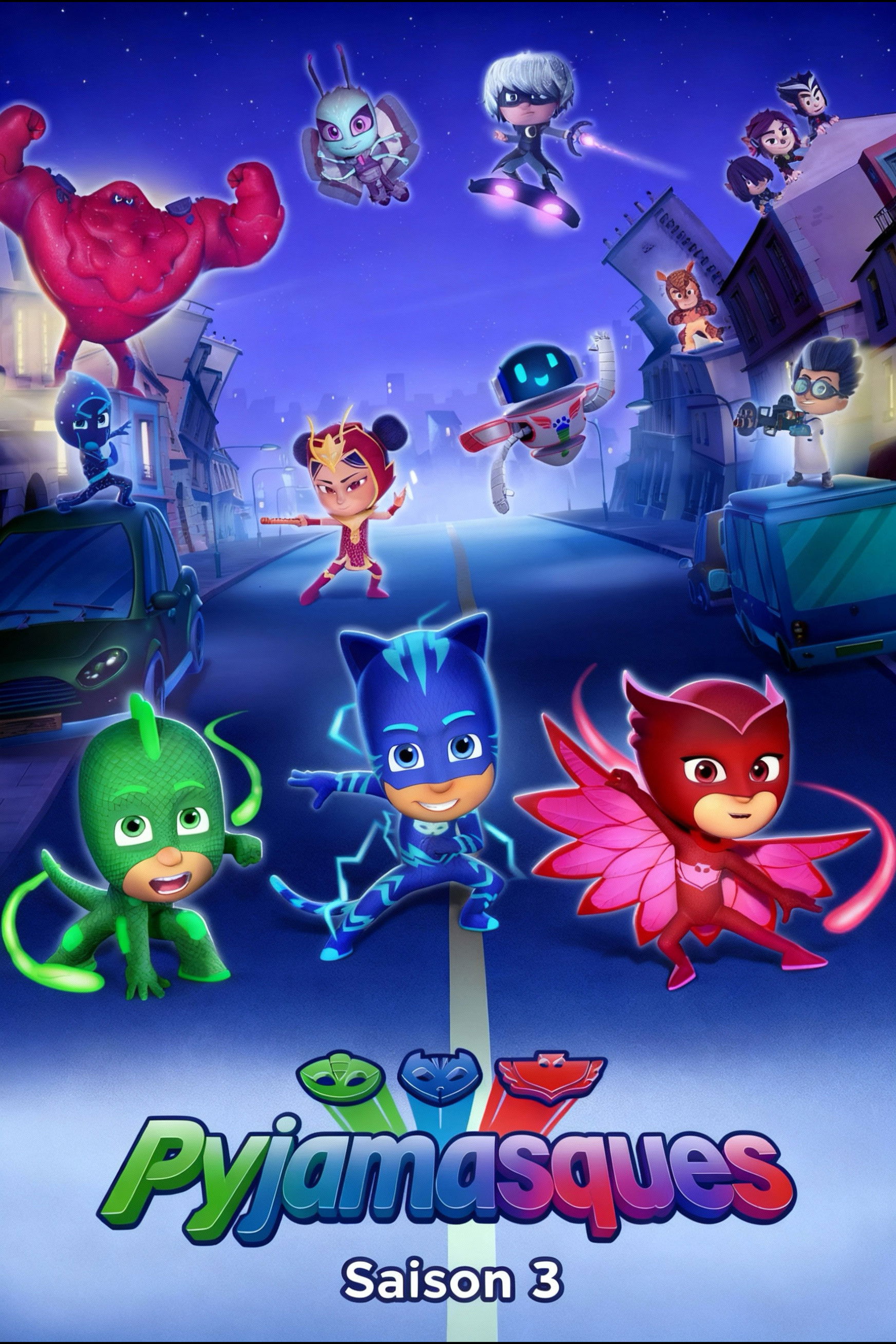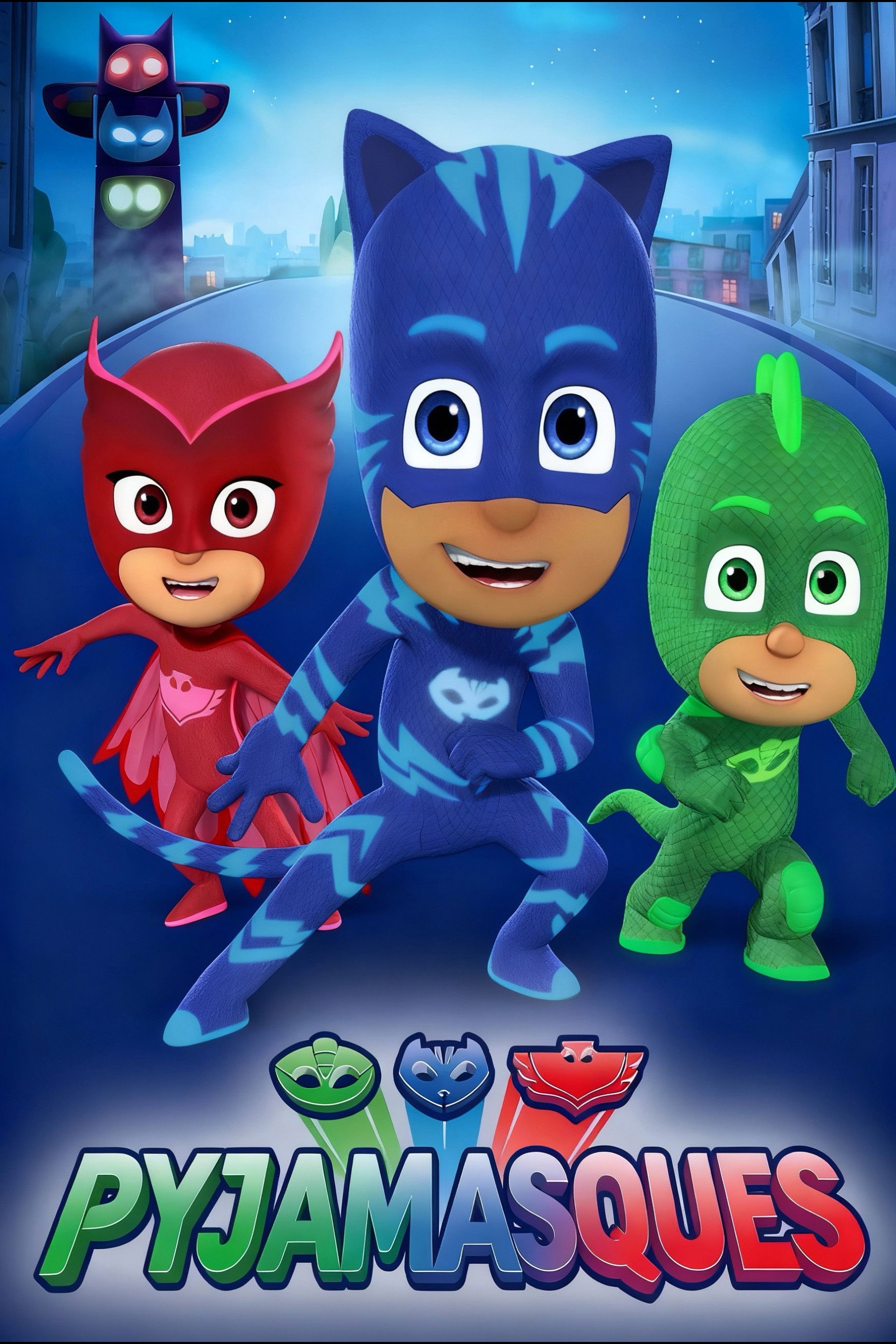 Connor, Greg and Amaya are normal kids by day, but at night they activate their bracelets, which link into their pajamas and give them fantastic super powers, turning them into their alternate identities: the PJ Masks! The team consists of Catboy (Connor), Gekko (Greg) and Owlette (Amaya). Together, they go on adventures, solve mysteries, and learn valuable lessons. Watch the first six seasons of PJ Masks now on Disney+!