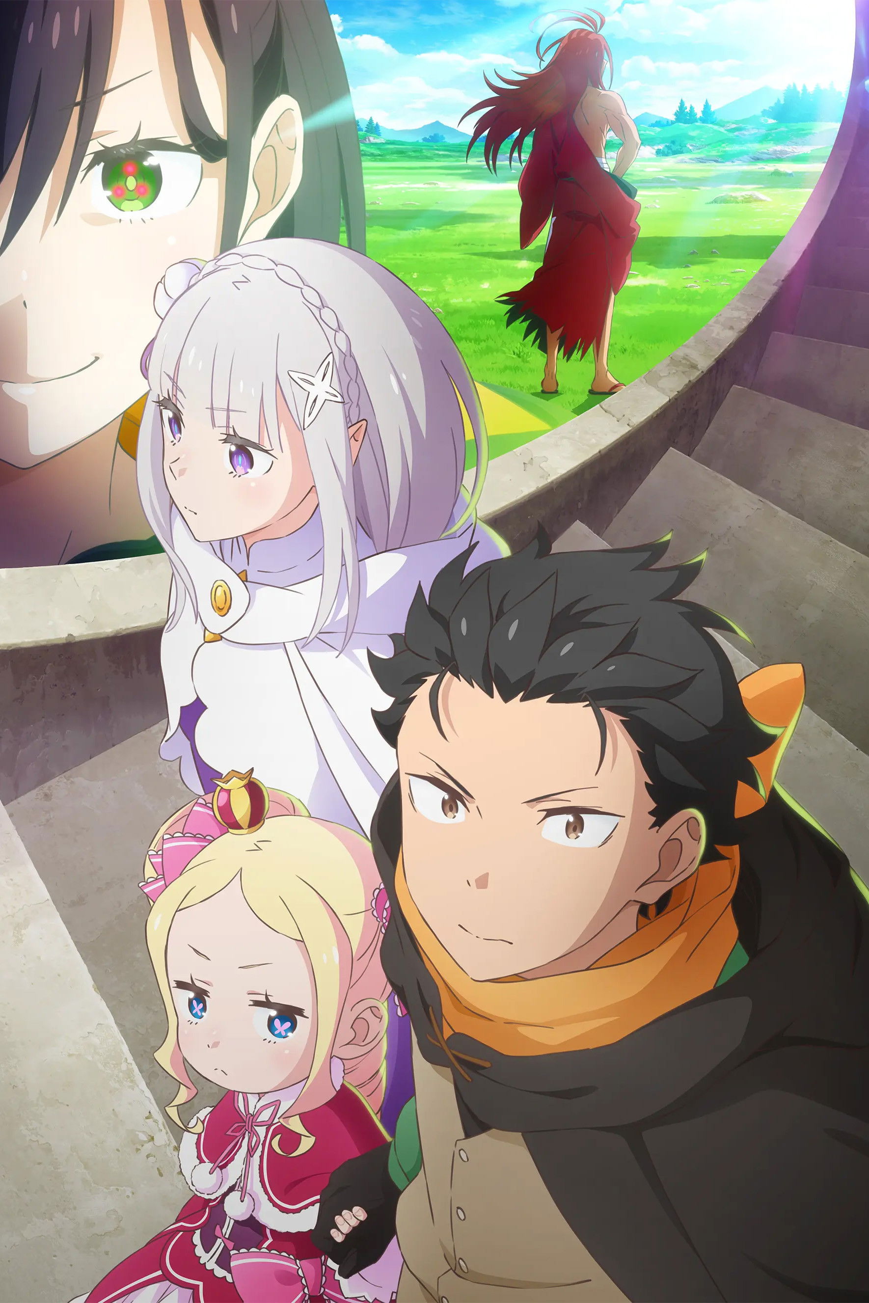Natsuki Subaru, an ordinary high school student, is on his way home from the convenience store when he finds himself transported to another world. As he's lost and confused in a new world where he doesn't even know left from right, the only person to reach out to him was a beautiful girl with silver hair. Determined to repay her somehow for saving him from his own despair, Subaru agrees to help the girl find something she's looking for.