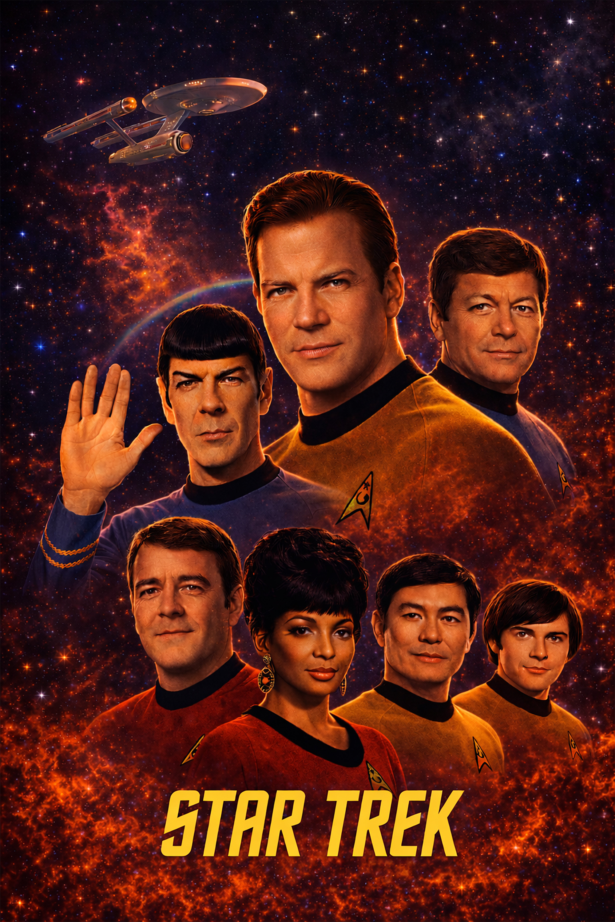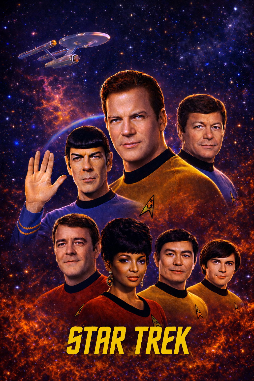Space. The Final Frontier. The U.S.S. Enterprise embarks on a five year mission to explore the galaxy. The Enterprise is under the command of Captain James T. Kirk with First Officer Mr. Spock, from the planet Vulcan. With a determined crew, the Enterprise encounters Klingons, Romulans, time paradoxes, tribbles and genetic supermen led by Khan Noonian Singh. Their mission is to explore strange new worlds, to seek new life and new civilizations, and to boldly go where no man has gone before.