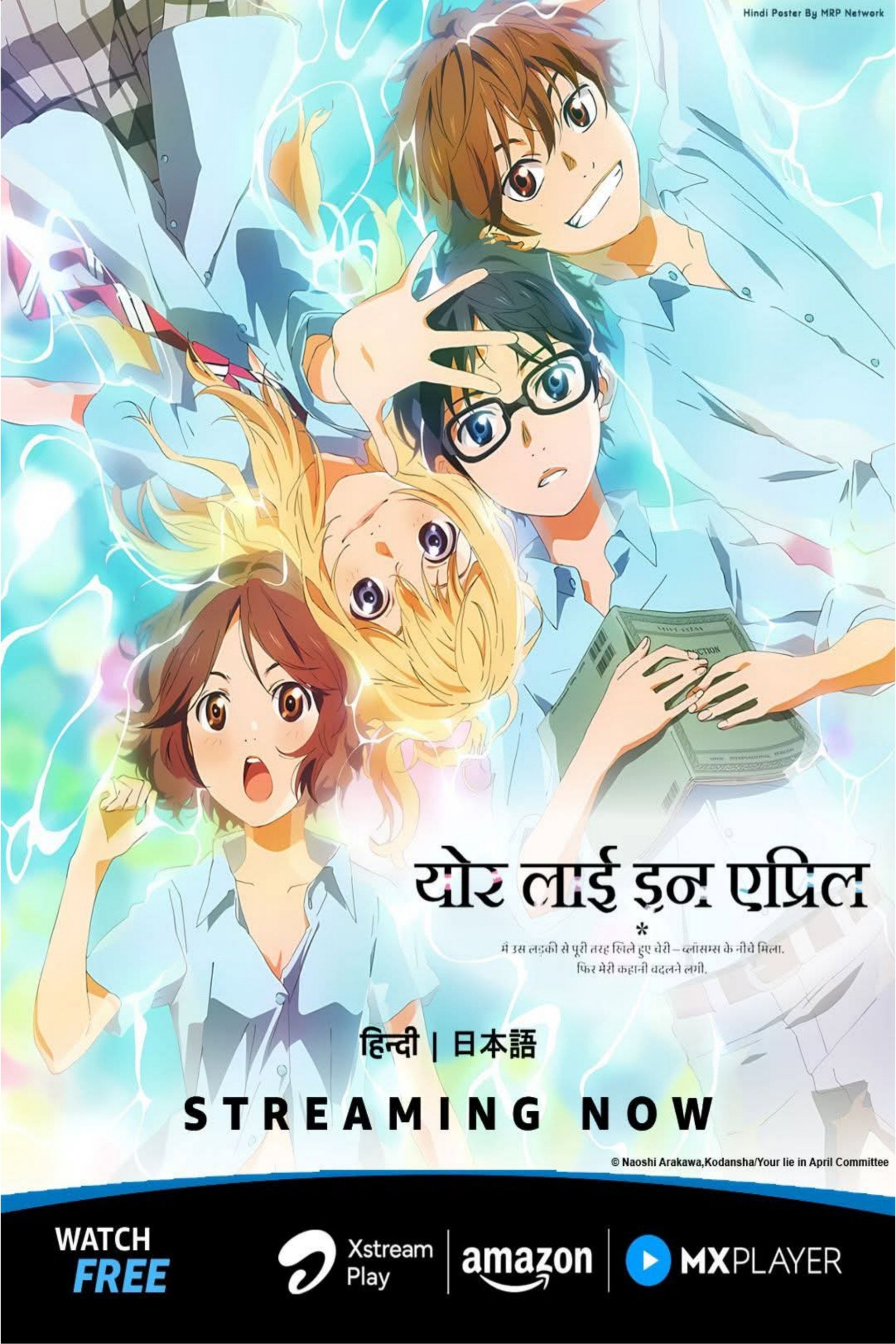 Kousei Arima was a genius pianist until his mother's sudden death took away his ability to play. Each day was dull for Kousei. But, then he meets a violinist named Kaori Miyazono who has an eccentric playing style. Can the heartfelt sounds of the girl's violin lead the boy to play the piano again?